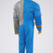 - Jumpsuit fastens at the back with a hook and loop fastner