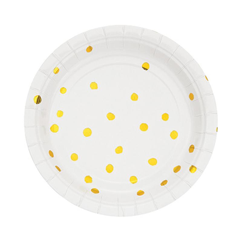 White & Gold Paper Plates 7 Inches, 8 per Package